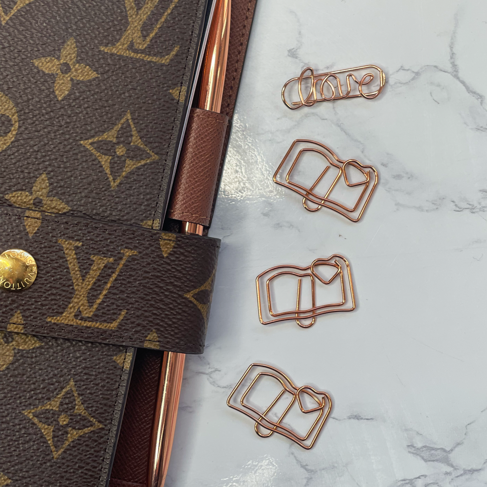 This set comes with 3 rose gold 'book' paper clips, and 1 'love' paper clip.