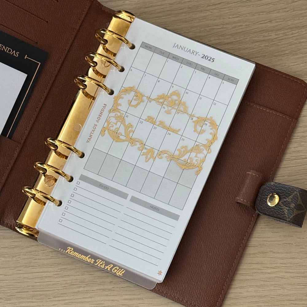 Suitable for a personal sized 6-ring planner or the Louis Vuitton MM agenda.