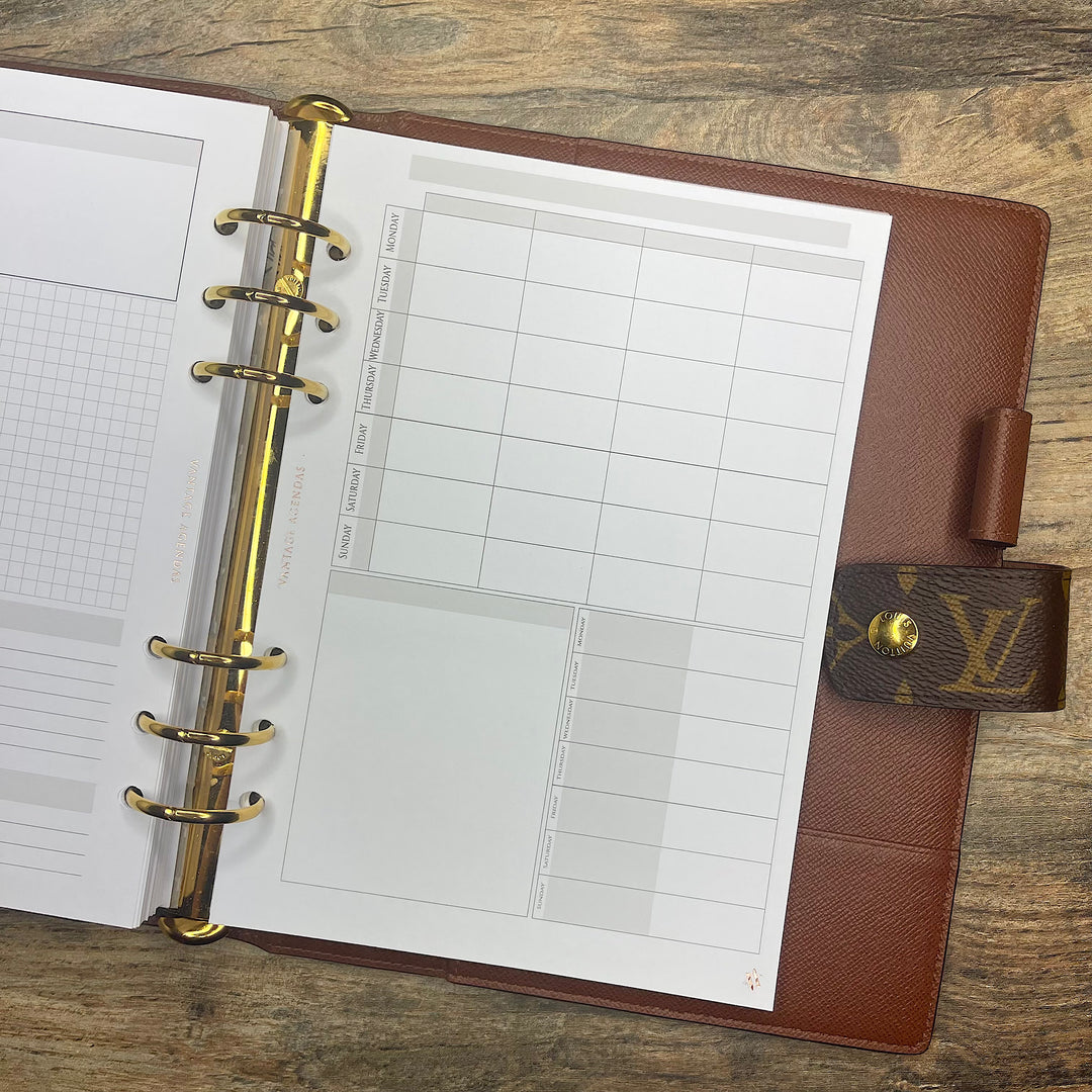 Rather than just setting goals, so me people prefer to block out time for each individual task. These inserts allow you to divide up your week this way- with additional space for planning.