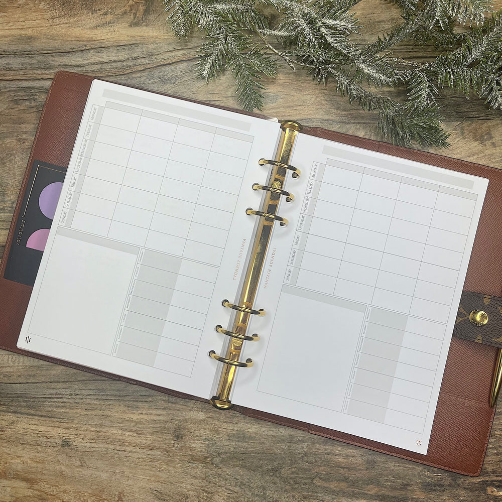 Rather than just setting goals, so me people prefer to block out time for each individual task. These inserts allow you to divide up your week this way- with additional space for planning.